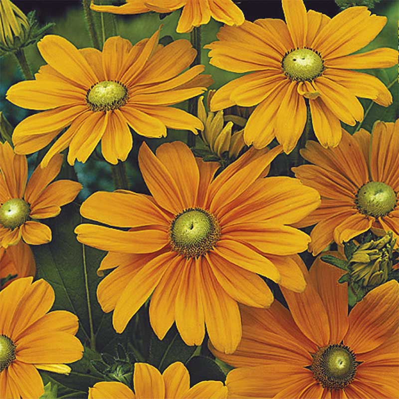 Härligt gyllene blommor med en effektfull grön mitt. Passar utmärkt i rabatt och som snitt!'