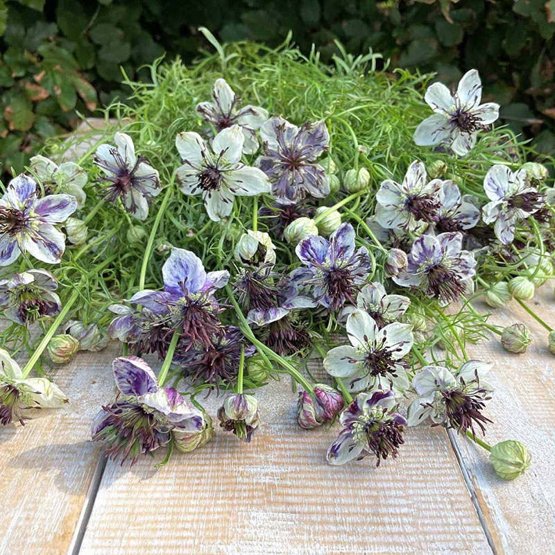 Tvåfärgade blommor, med vita och blå strimmor. Perfekt som bukett, eller torka som eternell. Lättodlad.