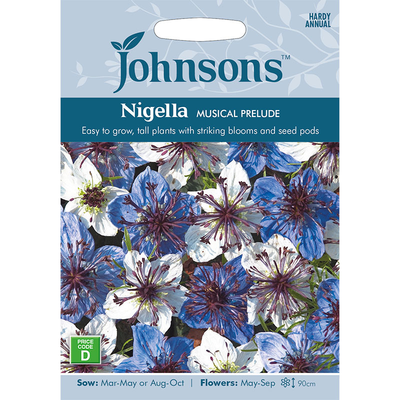 Med ett sirligt bladverk och vita/blå blommor med mörka ståndare och frökapslar, är denna blomma söt och tuff på samma gång. Passar såväl i rabatten som i buketten.