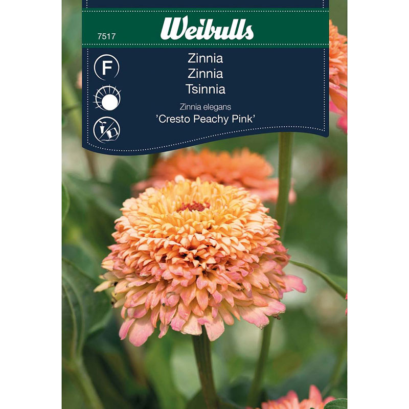 Fantastiskt vackra blommor i en tilltalande persikorosa färgställning. Älskas av fjärilar. Trivs i rabatt eller kruka. Populär som snittblomma. Odling: Så inomhus i mars-april. Håll fuktigt under groning. Omplantera till 1 planta/kruka med gödslad jord när plantorna är stora nog att hanteras. Utplanteras efter avhärdning när frostrisken är över. Kan även sås direkt på friland när jorden blivit uppvärmd. Rensa bort överblommat för att gynna ny blomsättning.