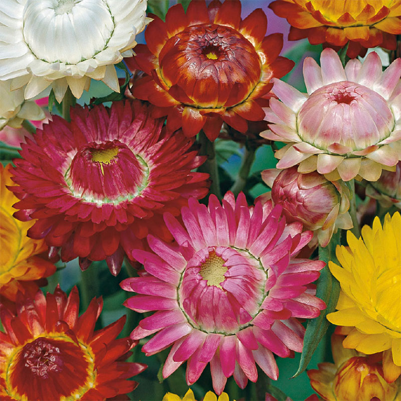 Lättodlad med prästkrageliknande blomknoppar med ljusa, pappersaktiga fjäll som håller färgen långt efter det att den skördats och torkats. Idealisk att fylla ut sommarrabatten med.