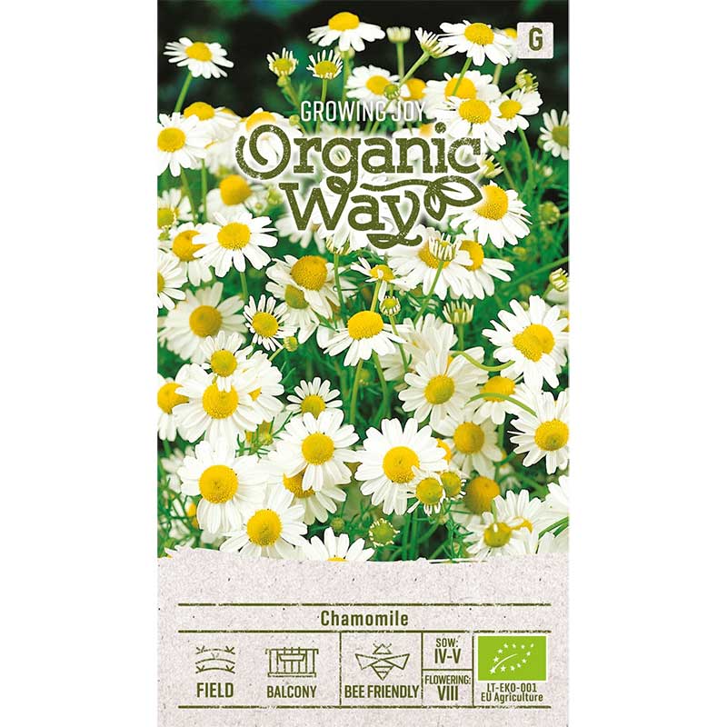 Ekologiskt frö. En kulturhistorisk växt som använts i tusentals år som medicinalväxt. Vildväxande på öppna ängsmarker. Bra växt för pollinerare.Te bryggt på kamomillens blomkorg anses vara inflammationshämmande och förbättra aptiten. Kamomillvatten anses jämna ut rynkor, rengör, lugnar och återfuktar huden. Plocka blommorna nyss utslagna och torka dem på mörk, torr plats. Kamomill självsår sig där den trivs.