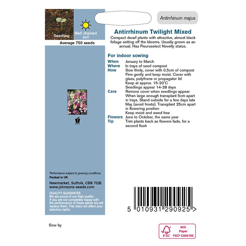 Vetenskapligt namn: Antirrhinum majus 'Twilight'Såtid: mars-april