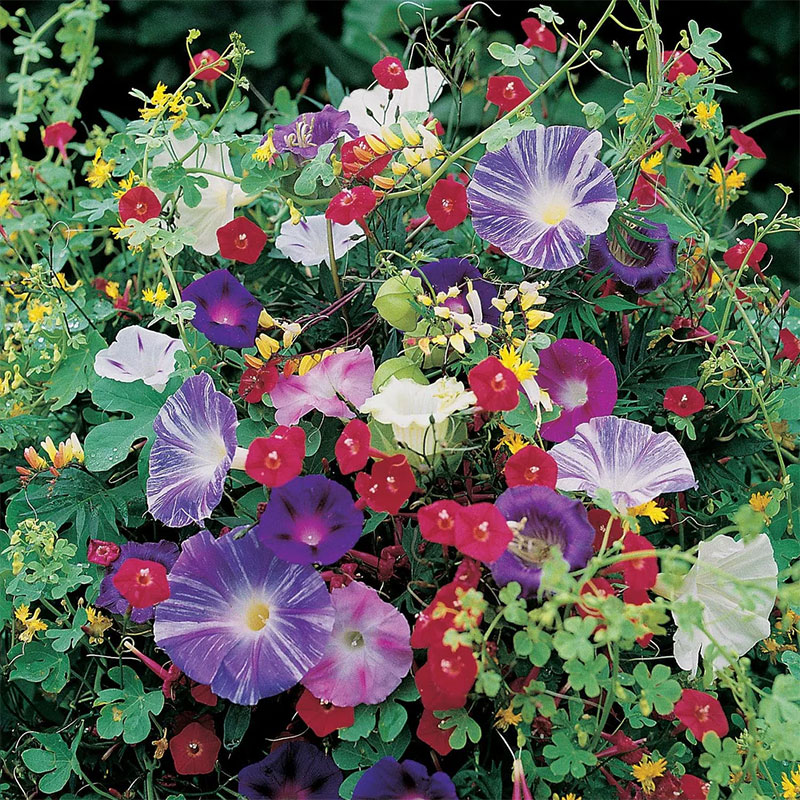 Ett underbart urval av frodiga och färggranna, ettåriga kläng- och klätterväxter som skapar rikligt med färg på spaljéer och växtstöd. Även effektfullt i ampel.
