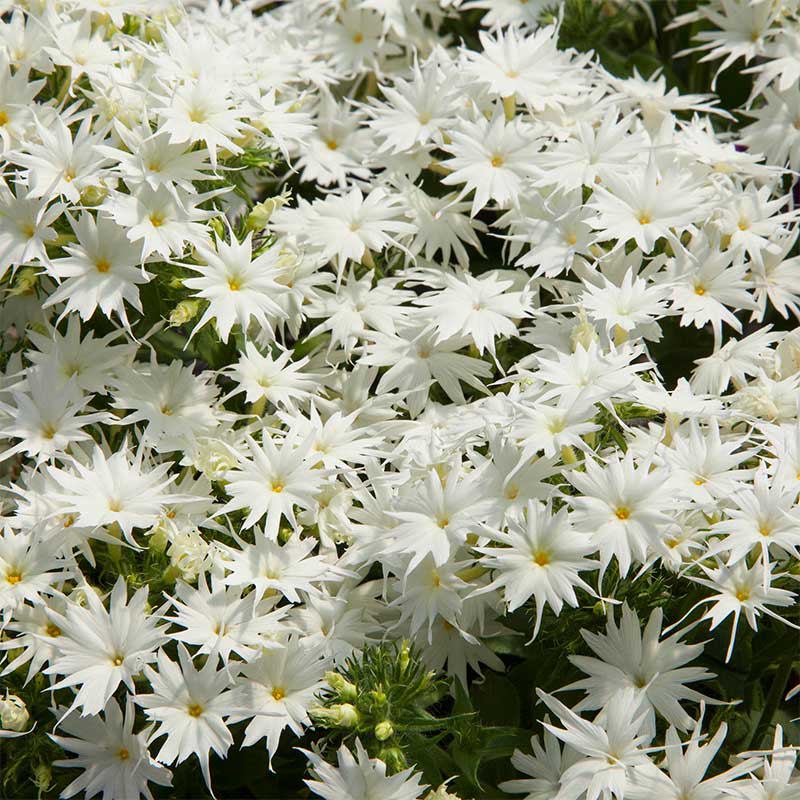 En läcker vit sommarflox. Stjärnformade blommor som passar perfekt i ampel, kruka eller rabatt.