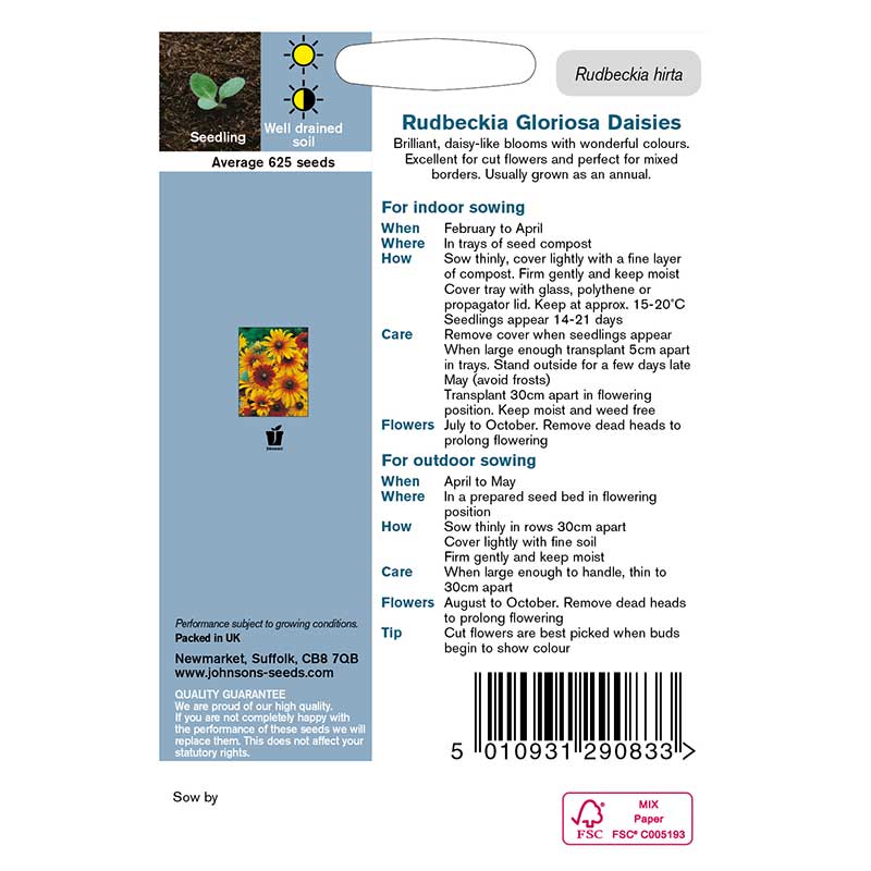 Strålande sommarsolar på stadiga stjälkar. Sommarrudbecikan har en lång blomningstid, också som snittblomma. 'Gloriosa Daisy' blommar i ett spännande färgspel; brunrött, gult och orange med mörk mitt. Fin i både rabatt och kruka.