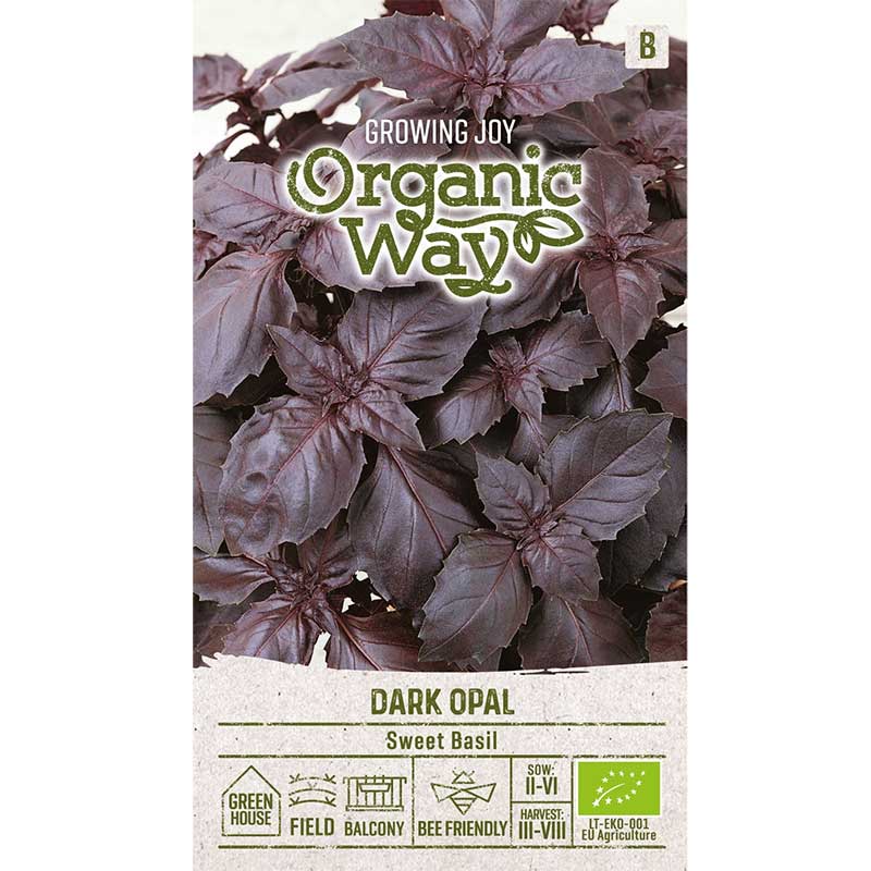 Ekologiskt frö. Häftig mörkbladig basilika med den klassiska smaken. Fin att samodla med andra växtslag. Basilika trivs i värme och ljus, odla i kruka på fönsterbrädan, på en varm plats utomhus eller inomhus under växtlampa året om. Trivs också i hydrokultur. Ett måste i pesto och i alla slags rätter med tomat.
