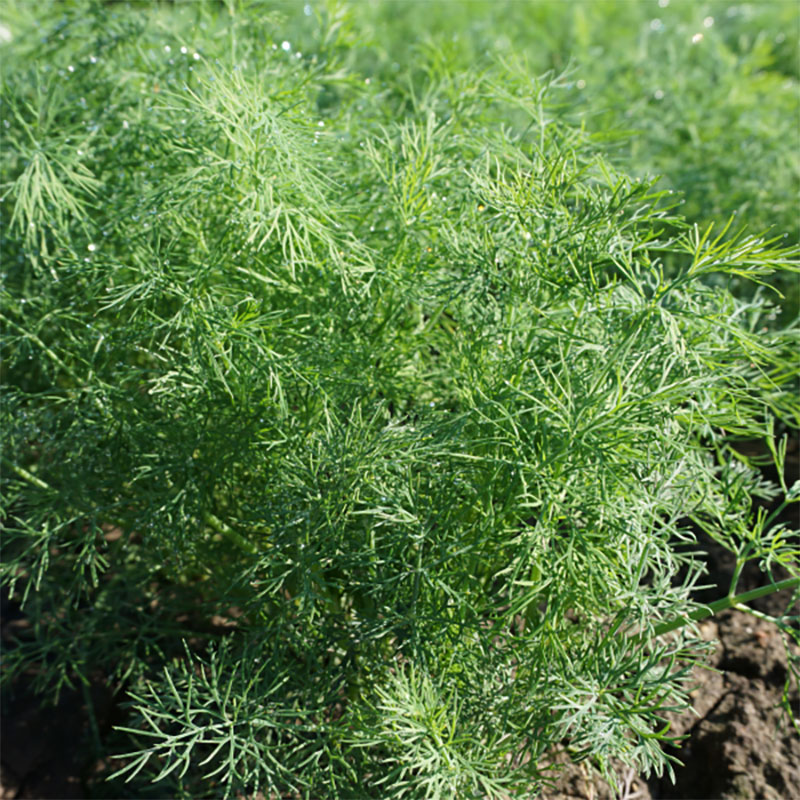 Lågväxande sort med kraftig dillsmak och mörkgröna blad.