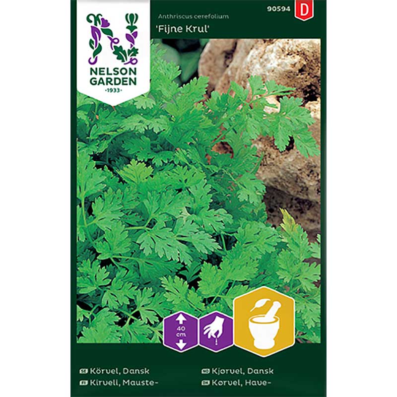 Delikat kryddört med något anissmakande blad. Bladen används färska klippta i sallader och över mat på samma sätt som persilja. Vacker och lättodlad, sorten har extra finflikiga och krusiga blad. Den frösår sig lätt och blir på så sätt ofta flerårig i trädgården. Skörda späda blad efter hand som plantorna växer till. Finklippta blad kan frysas. Trivs bäst i lucker näringsrik jord men är gansksa anspråkslös.