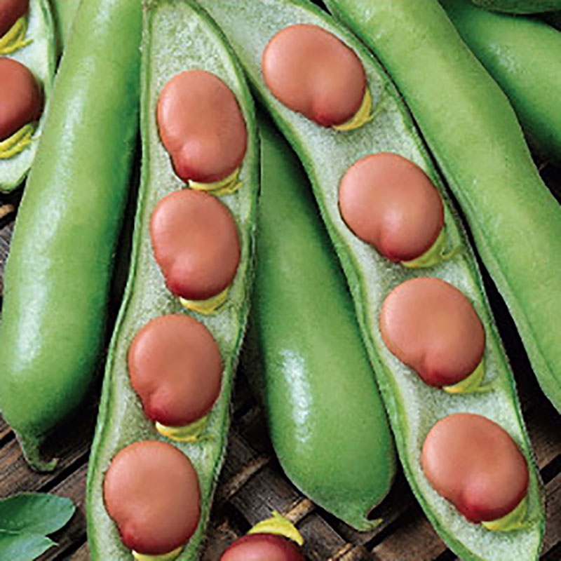 Baljan blir kraftig med 3-5 rosafärgade bönor, mognar samtidigt, lättskalad.