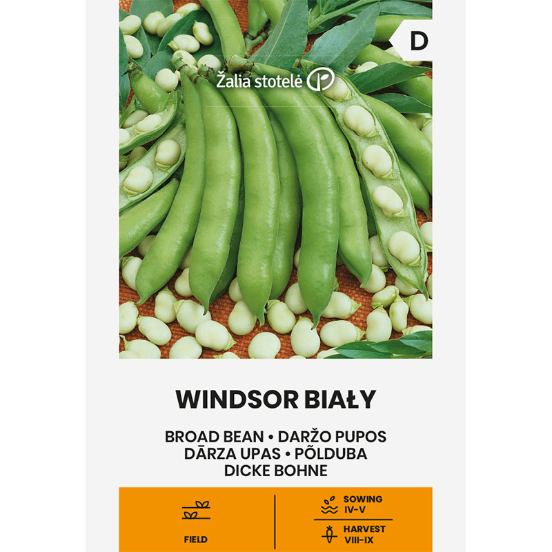 Medelsen sort. Blir ca 100 cm hög. Får kraftiga baljor med 4–6 stora, gulvita bönor.