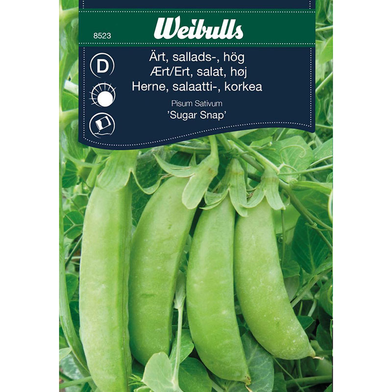 En favorit i generationer. Sallatsärt med tjockväggiga, nästan runda baljor med en mycket söt smak. Baljorna ätes hela, som snacks, är krispiga och läckra även i salladen. Goda stuvade eller lätt kokta. Utmärkt för infrysning. Odlas bäst på mullrik jord. Odling: Så direkt på växtplatsen i flera omgångar under maj-juni. Mylla fröet 2-3 cm djupt. Ofta har jorden torkat upp rätt mycket, när det ät dags för ärtsådd. Vattna rejält. Gror efter 10-14 dagar. Stötta plantorna med pinnar vid behov. Skörda baljorna efter hand som de växer till.