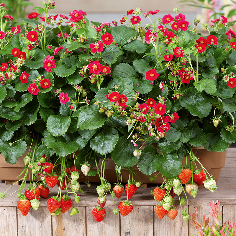 En sensationell jordgubbe som hör till den nya generationens jordgubbar som ger kontinuerlig skörd hela sommaren genom att blomma om, remontera.