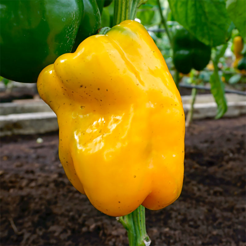 Tidig hybrid som är resistent mot tobaksmosaiksvirus. Växten blir ganska hög. Frukterna är mycket stora, har 3-4 rum, är avlånga, lätt räfflade, väger 360-380 gram och har gul färg när de är mogna.