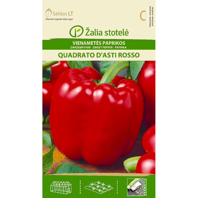 Paprika 'Quadrato d’Asti Rosso', 0,1 g frön, stora avlånga frukter som blir röda