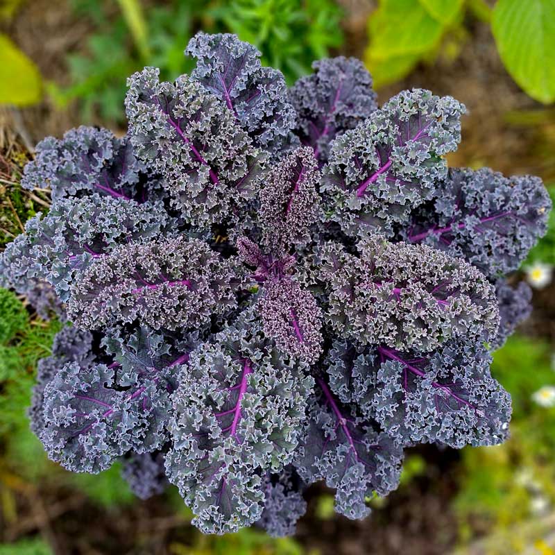 Krusig kål. Skiljer sig från andra kålsorter då man till mat inte använder huvudet utan bladen - denna kål formar inte huvuden.