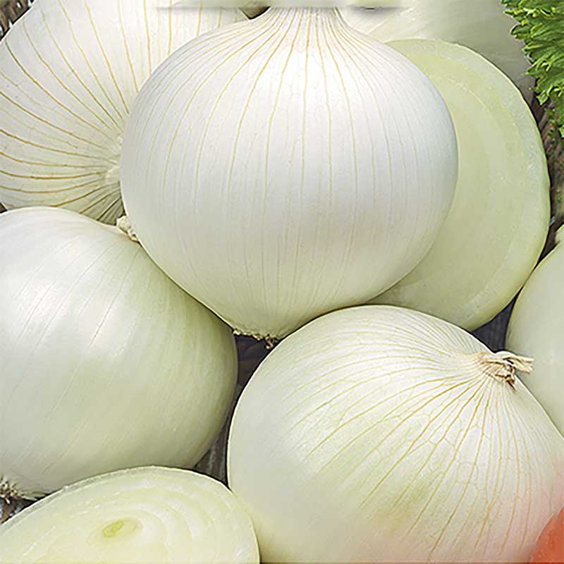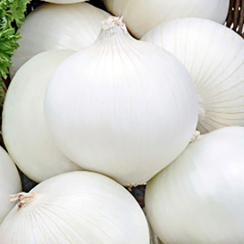 Lökarna är plattrunda med vita skal, väger omkring 105 g och har mild smak.