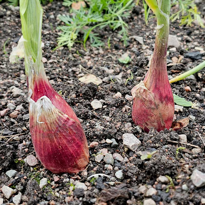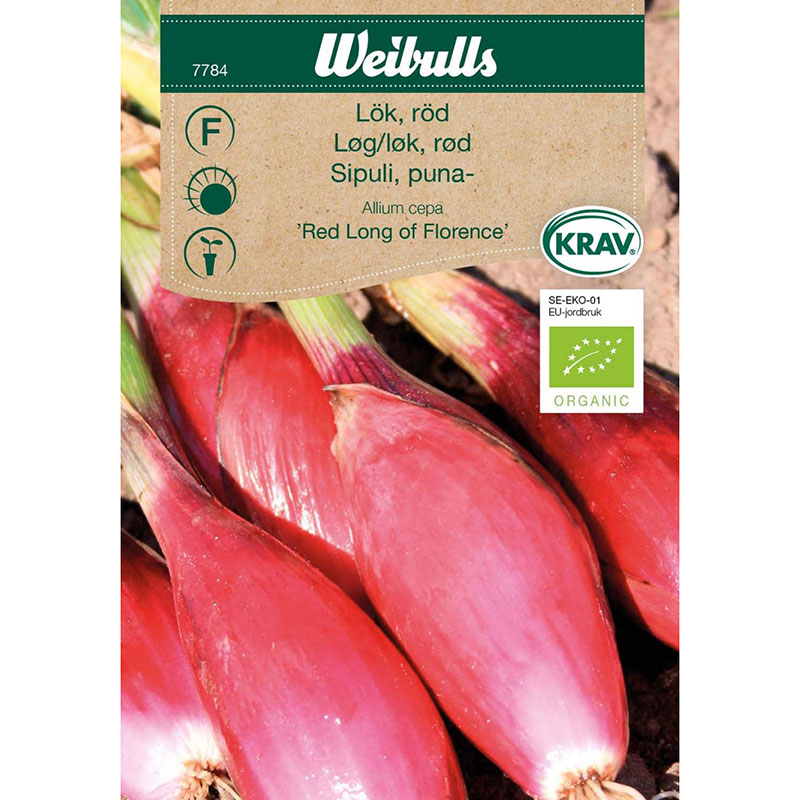 Traditionell lättodlad lök med en vacker rödviolett färg. Mild, söt och saftig. Passar till matlagning men även rå till sallader. Odling: Förså inomhus i mars-april. Täck sådden med plast som har lufthål. Avhärda innan utplantering när frostrisken är över. Vattna rikligt och skörda när blasten lägger sig.