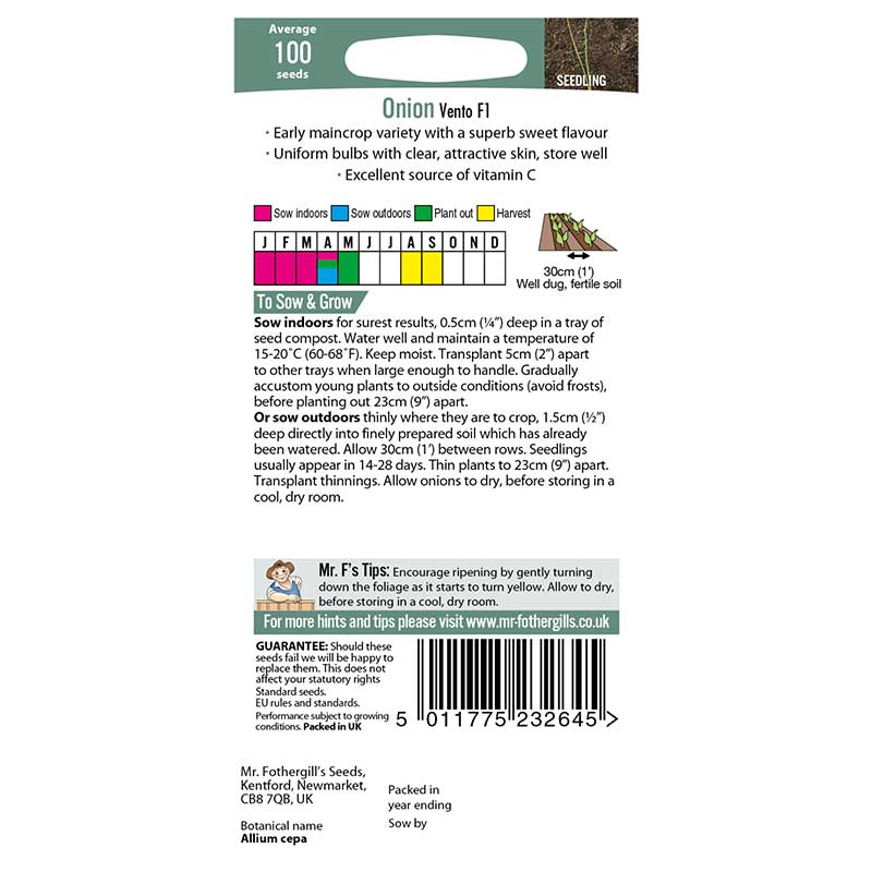 Vetenskapligt namn: Allium cepaGullök-gruppen 'Vento' F1Såtid: mars-maj