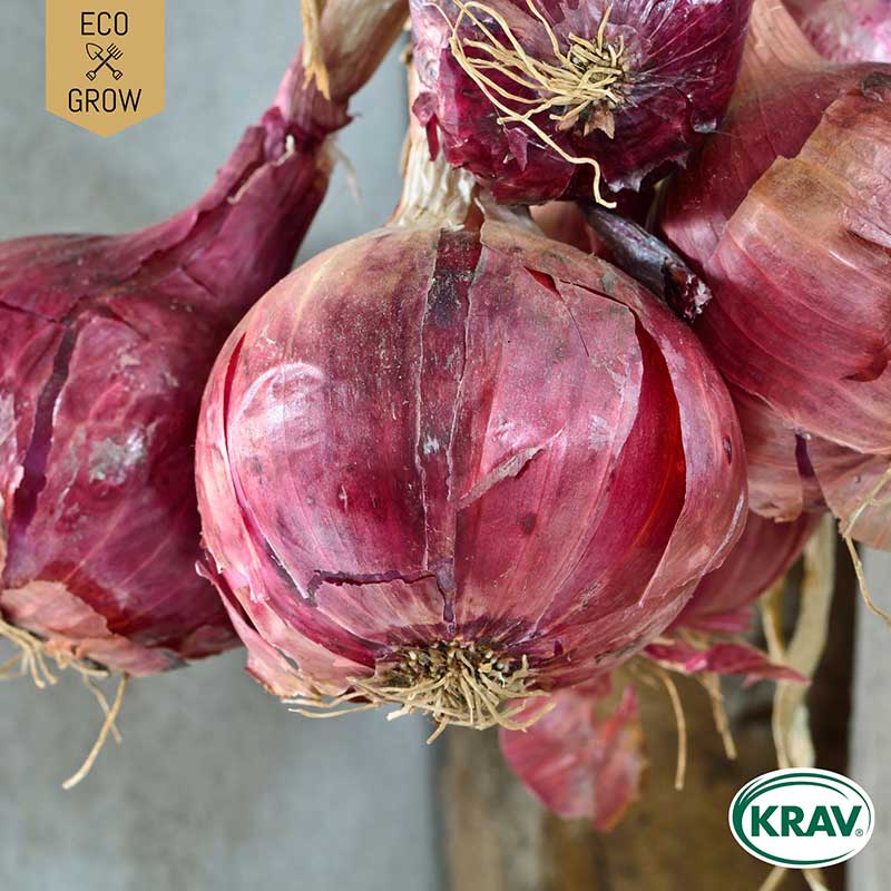 Rödlök 'Morada de Amposta' - är en fin, spansk rödlök med ett bronsrött yttre. Ger kraftiga, söta lökar med goda lagringsegenskaper.