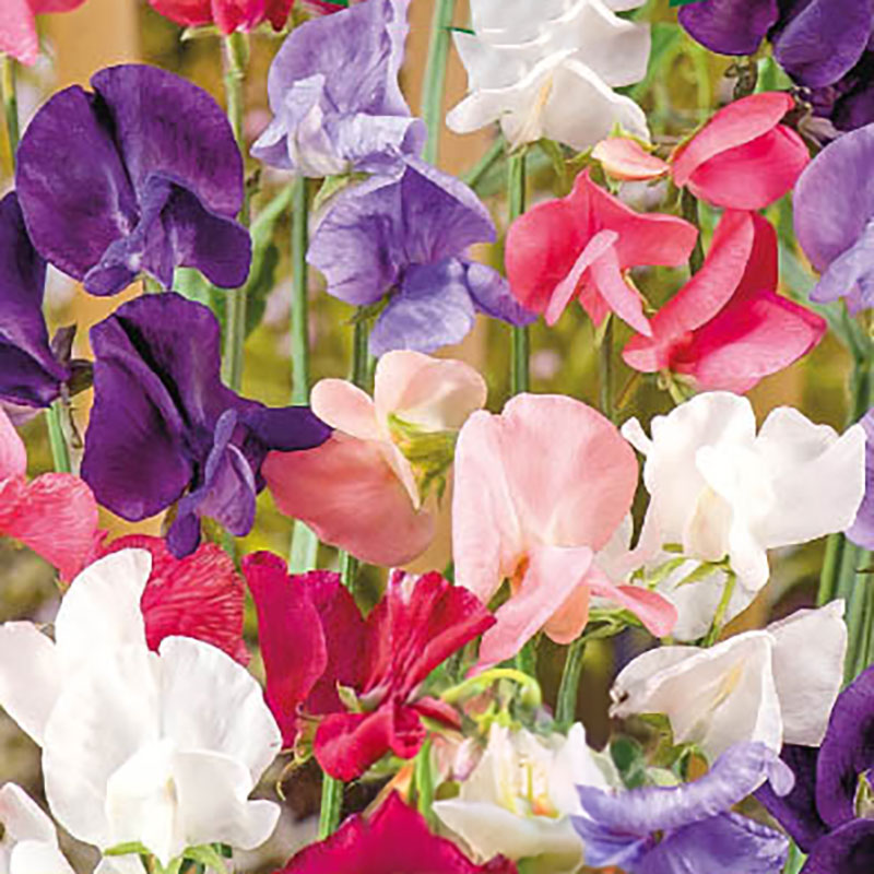Luktärt i fina färger. Blommorna är inte så stora, men förekommer rikligt. Lämplig både för kruka och rabatt. Behöver stöd.