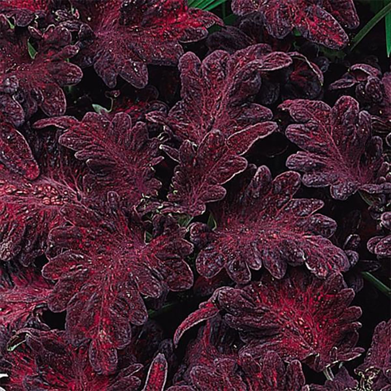 Välförgrenade växter med mycket stora, rynkade, sammetslena svarta blad med rubinröd mitt. Black Dragon växer till 45 cm hög och är en exeptionell växt för rabatter och krukor.