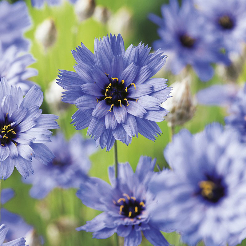 Vackra, lansettformde blad med klarblå till blålila blommor med mörk mitt. Fin i rabatt och som snitt. Förökas lätt med rotbitar.