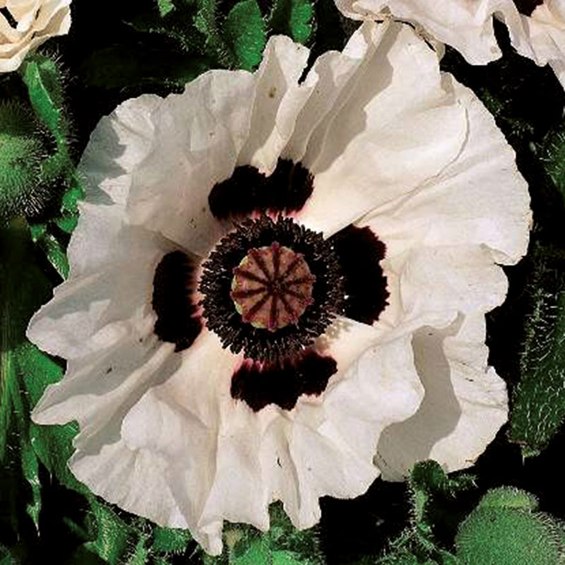 En superelegant perenn med luftiga, vita kjolar och ett mörklila centrum. De vackra frökapslarna kan torkas som eterneller. Jättevallmo är robusta och pålitliga perenner som återkommer troget år efter år. Självsår sig om kapslarna får mogna kvar.