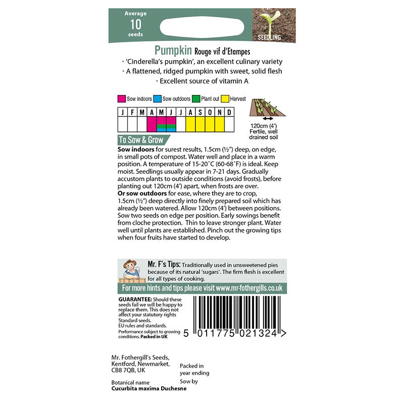 Vetenskapligt namn: Cucurbita maximaMammoth-gruppen 'Rouge vif d'Etampes'Såtid: mars-maj