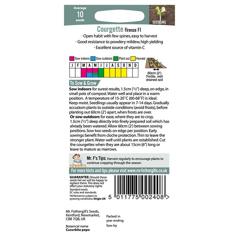 En rikgivande squash med ett öppet växtsätt som gör den motståndskraftig mot mjöldagg. Får massor av läckra frukter. De skördas små (ca 10 cm), som så kallade zucchinis. De är då krispiga och läckra att äta råa i sallad, att grilla eller woka. Väntar man lite längre kan frukterna användas till gratänger och grytor. Också blommorna är ätliga och kan stekas, eller gratinserad fyllda med en god röra. Kan odlas på friland, i pallkrage eller i stor kruka på balkong eller terrass.