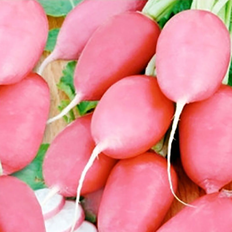 Rotfrukten oval, har en ljusrosa färg, är saftig med mild smak,