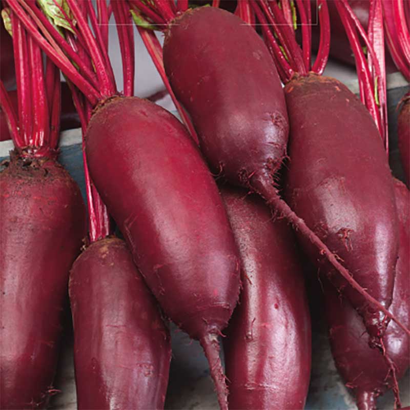 Härlig rödbeta med lång, cylindrisk form. Mörkrött fruktkött, enkelt att skiva. Gallringsskörda späda rödbetor som primörer efter drygt två månader. Skörda för inläggning och lagring när betan fått skal i september fram till frosten. Kan också odlas för skörd av färska småblad.