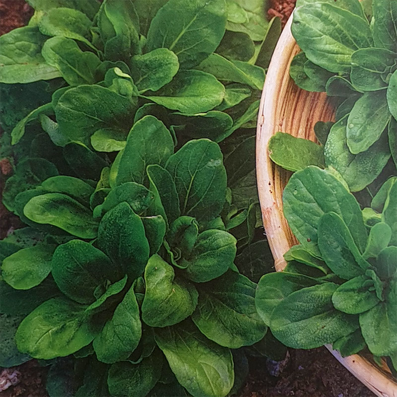 Skördefärdig efter 60 dagar. Plantorna är små. Bladen är gröna, stora, ovala, saftiga med en mild smak med inslag av nöt.