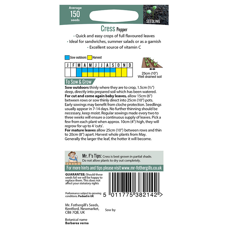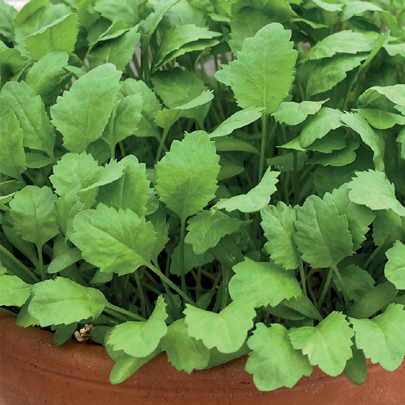 Smakrika, späda blad och blomknoppar som äts färska i sallad, på smörgås eller tillagade i t.ex. wok och ugnsrätter. Rik på C vitamin.