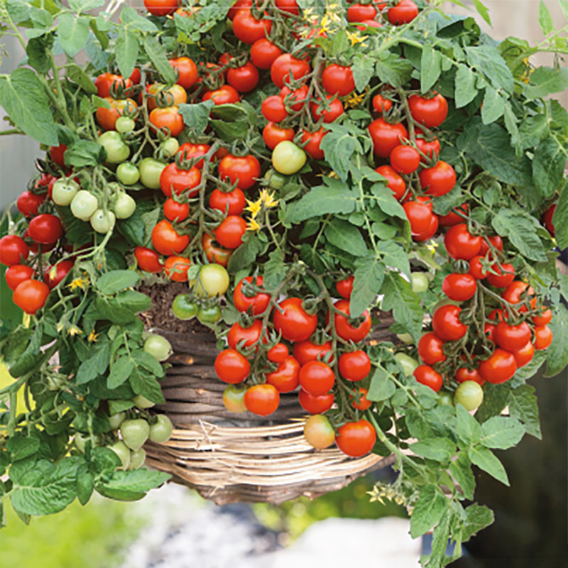 Långa klasar med söta körsbärstomater tidigt på säsongen. Perfekt för ampel, kruka eller balkonglåda på en varm, skyddad plats. Lättskött då plantan inte behöver bindas upp eller tjuvas.