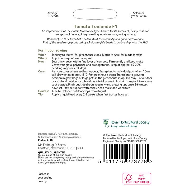 En otroligt läcker bifftomat med riktigt mustig smak. 'Tomande' F1 är AGM-belönad, Award of Garden Merit. En extra fin utmärkelse som utfärdas av anrika brittiska Royal Horticultural Society, RHS. Den ges till särskilt odlingsvärda och friska sorter. Odlas på varm plats, skyddat utomhus eller i växthus eller uterum.