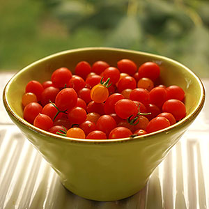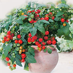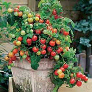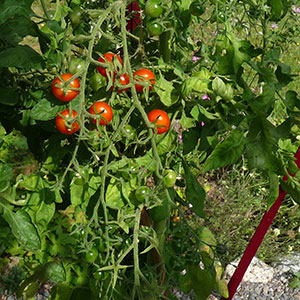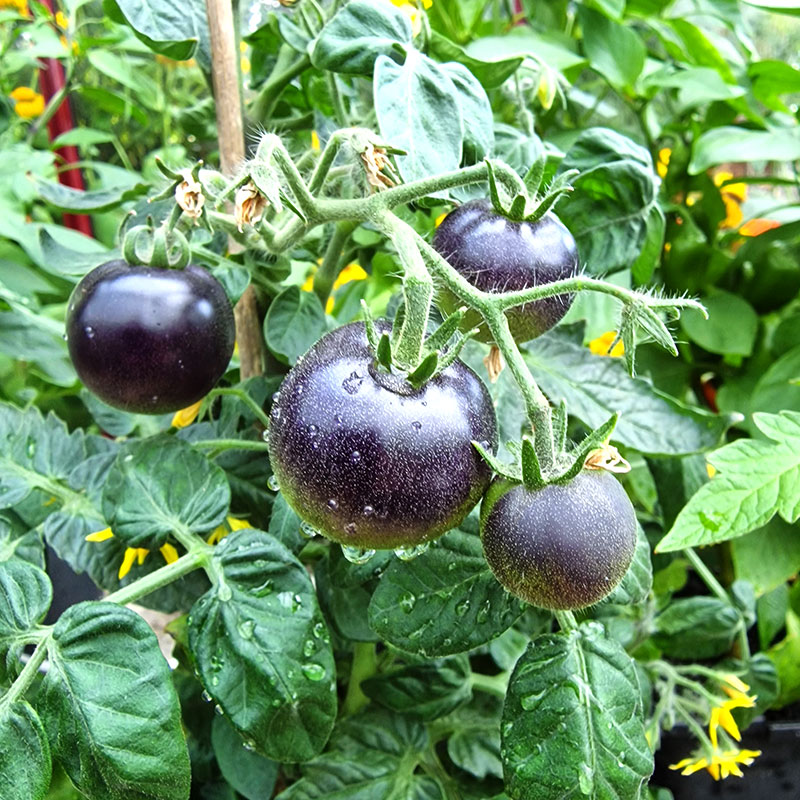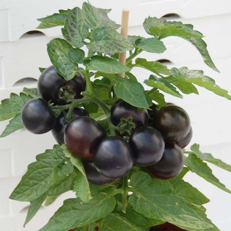 Läcker sort som översållas av mörka, små söta tomater på en kompakt planta. Perfekt för krukodling på balkong och terrass eller på fönsterbänken. Lättskött och behöver inte tjuvas eller bindas upp.
