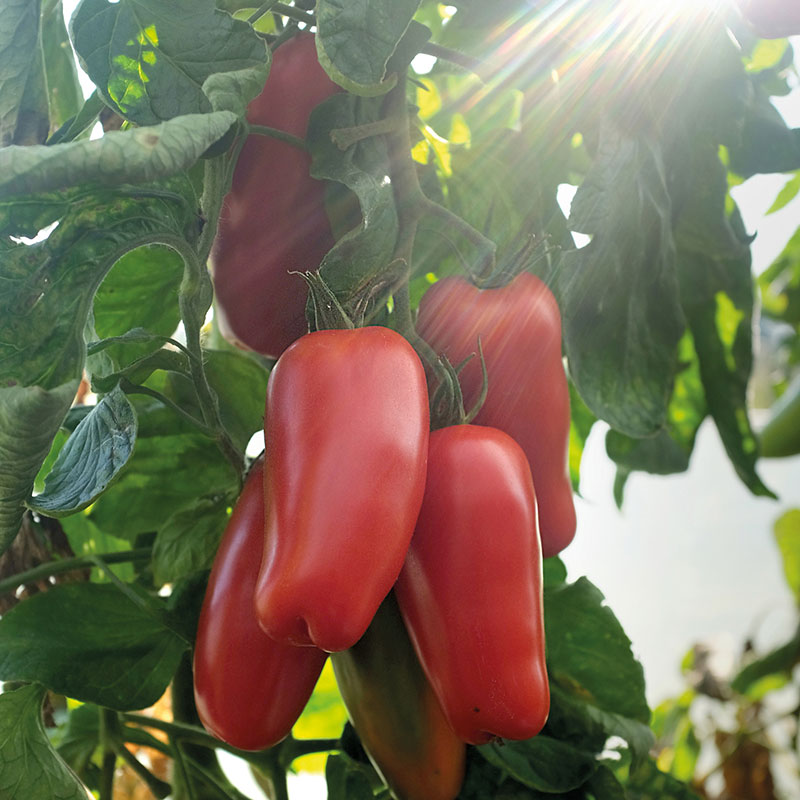 Ekologiskt frö. 'Agro' F1 är en matlagningstomat med en smal, avlång form och fast fruktkött. Skalet spricker sällan och smaken är aromatisk och rik. 'Agro' F1 har en hög resistens mot sjukdomar, vilket gör den pålitlig för odling.