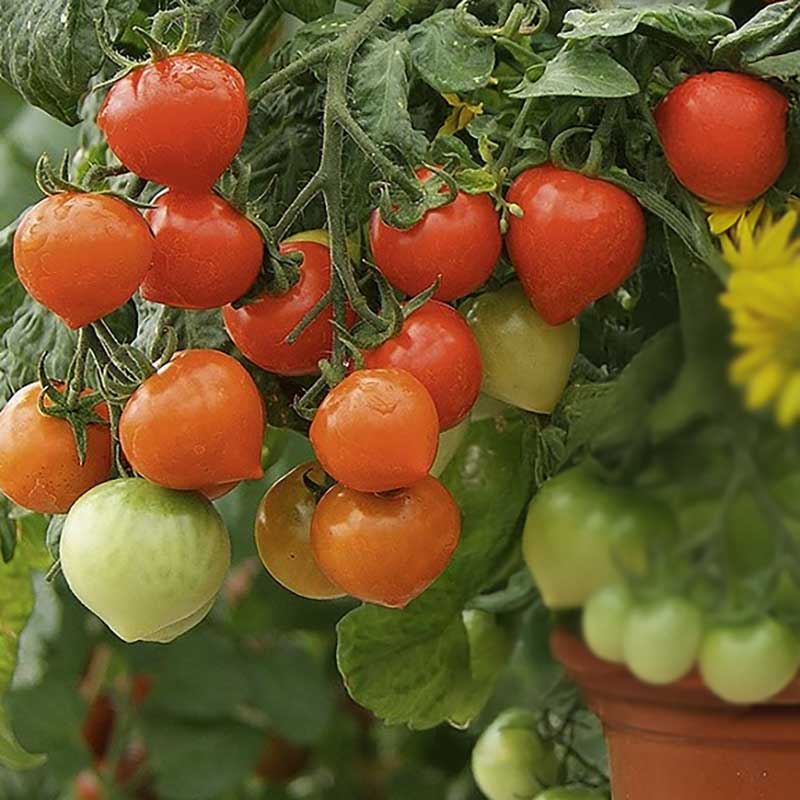 Passar bra i krukor och är en av de få sorter som inte kräver stora krukor. Tomaterna är små, väger 15 g och är mycket smaklrikam en planta kan producera ca 60-75 tomater.