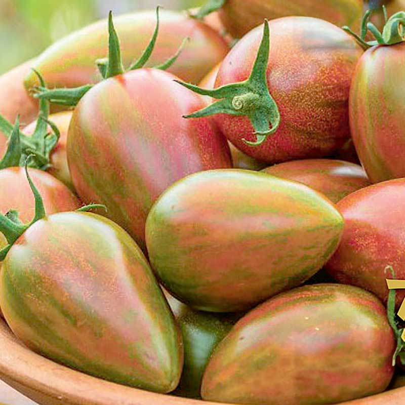 En högväxande plommontomat, med dekorativa fruker med gröna strimmor. Frukterna blir ca 35 gram och en planta kan producera ca 300 tomater. Väldigt söt och krispig smak, god i sallader. Odlas bäst i växthus eller på varm plats. Sidoskotten tjyvas.