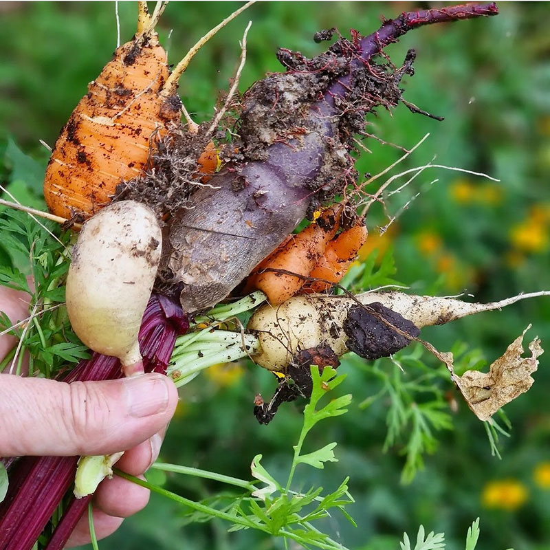 En blandning av smakrika rotfrukter som passar i sallad, soppa eller ugnsrostade. Enkel att odla och ger färg och smak till din trädgård eller pallkrage.