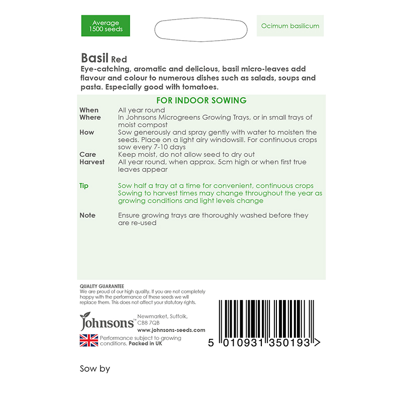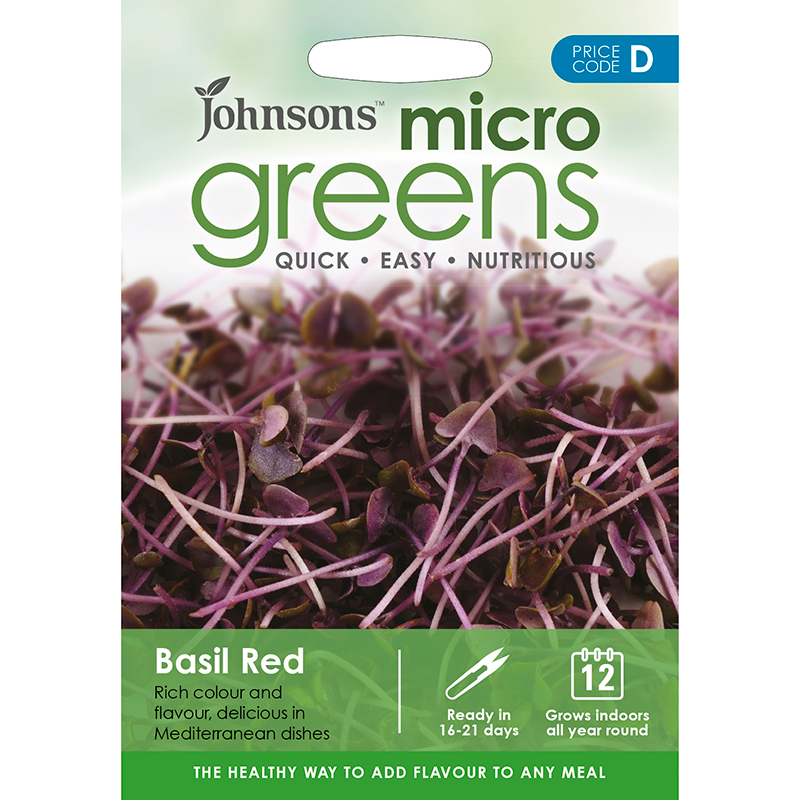 Aromatiska och läckra, basilikamikroblad ger smak och färg till många rätter som sallader, soppor och pastor. Särskilt gott med tomater. Klar på 16-21 dagar.