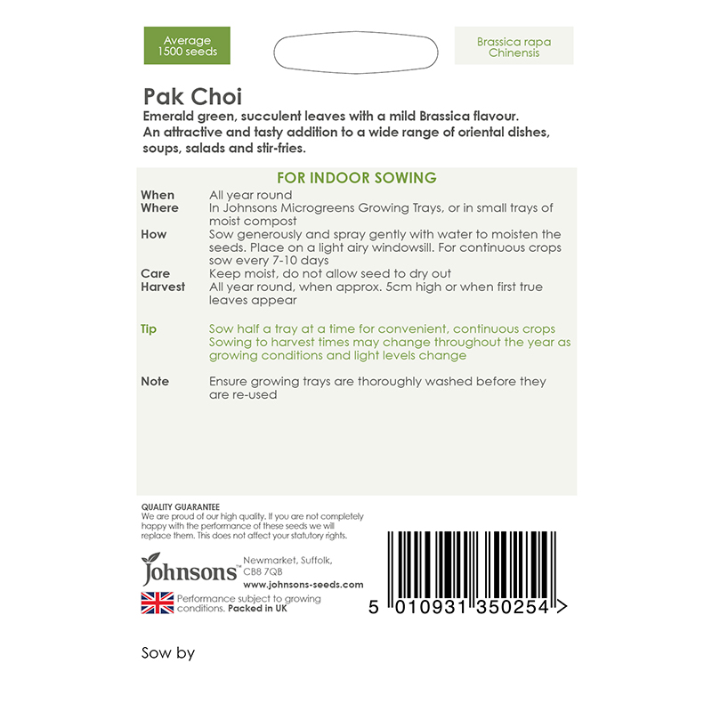 Smaragdgröna, saftiga blad med mild kål smak. Ett attraktivt och välsmakande tillskott till ett brett utbud av orientaliska rätter, soppor, sallader och röror. Klar på 16-21 dagar.