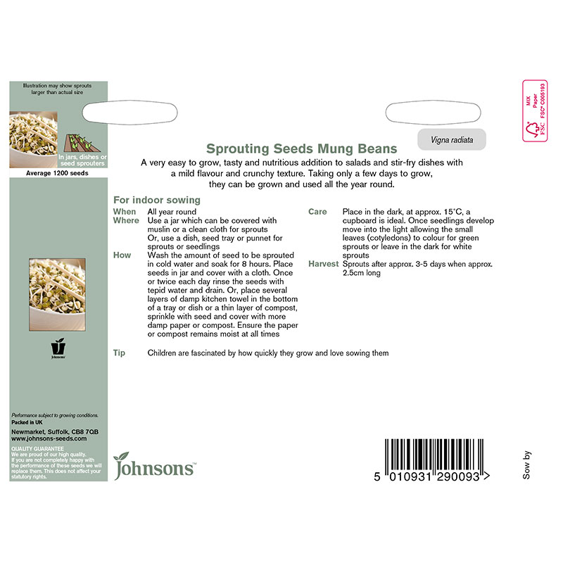 Ett mycket lättodlat och näringsrikt tillskott till sallader och wokade rätter, med mild smak och krispig konsistens. Det tar bara några dagar att växa och de kan användas året runt.