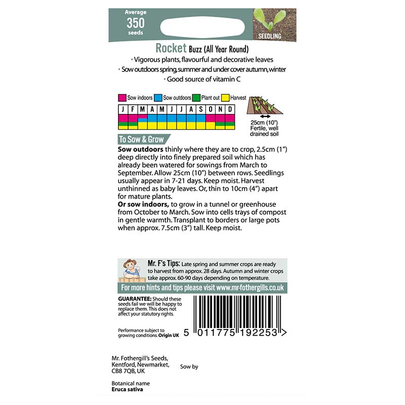 Vetenskapligt namn: Eruca vesicaria ssp.sativa 'Buzz'Såtid: Året om