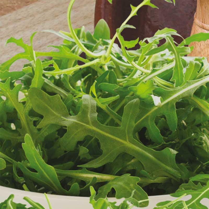 En mycket snabbväxande rucola med goda och vackra blad. Läckra blad att använda färska i sallader, strösslade på italienska rätter eller på smörgås. Skörda kontinuerligt så bryter nya skott fram. Så i omgångar året om, ute eller inne. Trivs i både kruka, pallkrage och i kökslandet. Också lämplig för inomhusodling med växtbelysning året om, även i hydrokultur. Växer bäst i lite sval temperatur med rikligt med vatten.