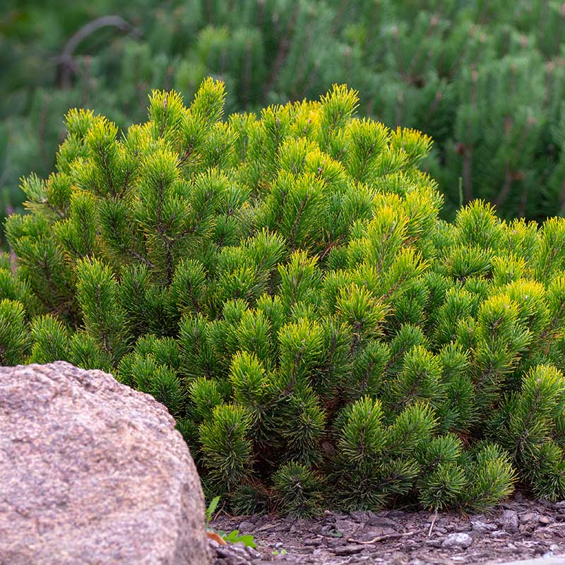 Liten bergtall (Pinus mugo var. pumilio), även kallad balkanbergtall, är en lågväxande och robust barrväxt med utbrett, rundat växtsätt och tätt grenverk. Den växer långsamt och bildar en bred, kompakt buske som ger ett naturligt och harmoniskt inslag i trädgården.