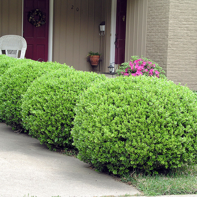 Buxbom är vintergrön med mörkgrönt bladverk.