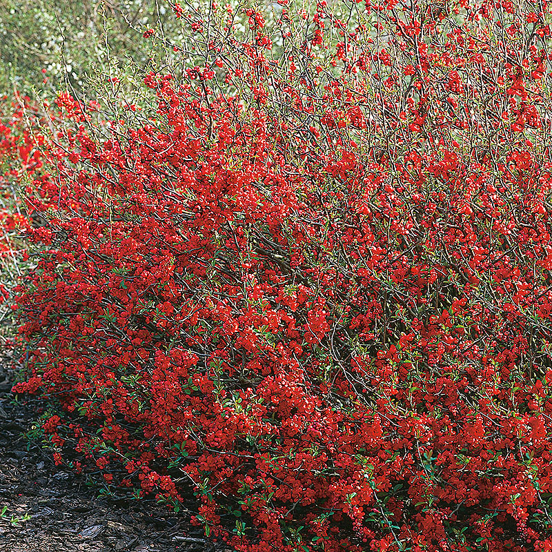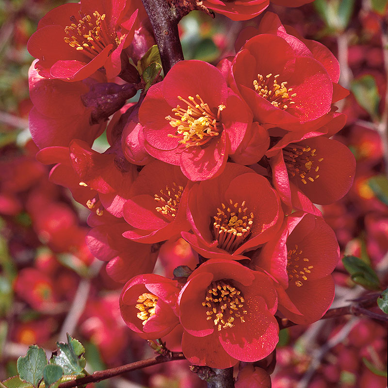 Fantastiskt vacker och lättodlad buske med gröna blad och scharlakansröda blommor i maj-juni.