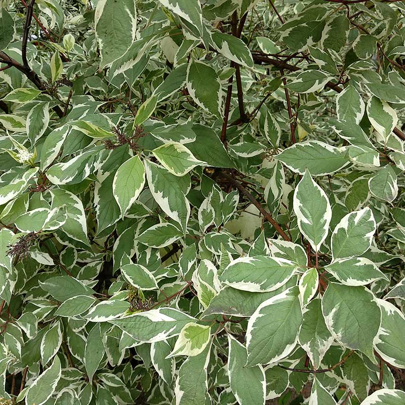 Vetenskapligt namn: Cornus alba Ivory Halo ('Bailhalo')
